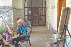 Dvorišče samostana je nudilo izjemno okolje za ustvarjanje. Na fotografiji je kamniški slikar Marjan Novak. / Foto: Špela Šimenc