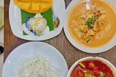 Čudila sem se, ko smo v tako kratkem času, le v nekaj minutah, kar v voku pripravili okusne aromatične sladke in pekoče juhe ali karije. Na tečaju sva z Nejcem zares spoznala pestrost in širino tajske kulinarike in začimb – sol in poper sta jim precej tuja, namesto njiju jedi sladkajo s palminim sladkorjem, solijo z ribjo omako, pikantnost pa venomer pridajo vražji čiliji. Za zaključek smo se izučili še v pripravi najbolj znane tajske sladice, sladkega riža s kokosovim mlekom in mangom, ki sliši na ime khaw neaw ma muang in ki je v tednih, ki so sledili, postal najina izbira med sladicami na vsaki nočni tržnici.