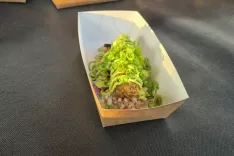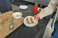 Jure Kralj iz Gostilne Baron je na festivalu razvajal brbončice z ocvrto svinjsko kračo na posteljici iz ješprenjeve solate s sezonskimi vložninami in zeliščno majonezo. »Izhajamo iz jedi, ki so jih delale naše babice,« je pojasnil idejo za preplet tradicionalnih okusov v sodobni preobleki. Jure Galičič in Anita Ferlin, ki sta v omejeni kuharski oddaji sodelovala pred tremi leti, pa sta se v duhu povezovanja tradicije in svojih idej obiskovalcem odločila ponuditi brusketo – zapečen kruh s kranjsko klobaso, sušenim paradižnikom, koščki kuhanega jajca in sirom, zaokrožen s pikantnostjo sveže naribanega hrena. Z začimbo ne pretiravamo, da ne prevlada, je svetoval Medvoščan med pripravo hrustljavih prigrizkov. In izvedeli smo še, da Anita večkrat popestri jedi s hrenom. Dobro se poda na primer h govedini iz juhe in praženemu krompirju, je namignila.