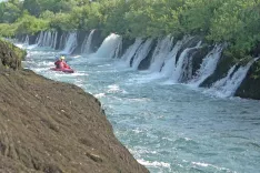 Naslednji kraj, kjer sem se ustavil, je blizu Mostarja. Tam se v Neretvo izliva reka Buna. Neretva je tu izdolbla do 14 metrov globok in približno sedem metrov širok kanal z dolžino 850 metrov. Vanj se preko tri metre visoke stopnje po skoraj celi dolžini kanala zliva reka Buna z res številnimi slapiči. Ta fenomen sem si najprej skrbno ogledal po celi dolžini in se takoj odločil: jutri bom to preveslal. Parkiral sem tik ob kanalu in prenočil v avtu. Zgodaj dopoldne, ko se je sonce prikazalo iznad hriba, pa akcija: kajak sem odvlekel na začetek kanala in zaveslal. Veslati pravzaprav niti ni bilo treba, ker je reka zelo hitra; samo za smer in ravnotežje je bilo treba skrbeti. S svoje leve pa sem užival v pogledu na brezštevilne slapove, ki jih ustvarja Buna. Sicer nezahtevno, vendar v estetskem smislu eno mojih najlepših veslanj! O smeteh, večinoma tekstilu, ki visi po skalah ob kanalu, pa raje ne pišem …