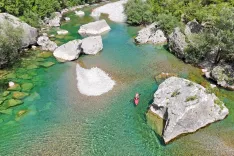 V vasi živijo večinoma Albanci. Kolikor jih sploh še živi tukaj. Veliko hiš je praznih, ker so se razselili po svetu, mi potoži domačin. In kakšna sreča, da sem naletel na tega človeka: je edini daleč naokrog, ki ima kajak in ga torej kajakaštvo zanima. Natančno mi je opisal dve nevarni mesti na reki in se ponudil, da gre z menoj do albanske meje. Tam bom začel veslati, on pa bo moj avto dostavil do svoje vasi. Odlično! Kasneje sem se mu od doma zahvalil z razglednico z naše Soče. Cijevna sprva teče po širokem kanjonu, njeni tolmuni so prav neverjetno lepi. V spodnjem delu sem z užitkom veslal v dva metra širokem in kakih sedem metrov visokem kanjonu. Voda je stoječa in topla, domačini se kopajo in lovijo ribe. Še ena reka, ki si jo bom za vedno zapomnil!