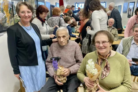 Ob avtorjih razstave Juriju in Dragici Kurillo predsednica ZKD Kranj Mija Aleš / Foto: arhiv ZKD Kranj