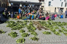 Skavti so material za butaro, ki so jo izdelovali na Cankarjevem trgu, nabirali po okoliških gozdovih, hribih in ob rekah. / Foto: Klara Mrak