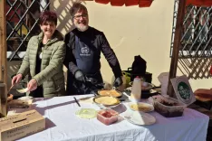 Prosvetno društvo (PD) Sotočje pa na cvetno soboto že skoraj trideset let v pokušino obiskovalcem Škofje Loke pripravlja postne jedi iz preteklosti. »Pripravljamo alelujo, loško medlo in loške smojke. Medla je prosena kaša, skuhana na vodi, zabeljena s surovim maslom. Smojke so olupljene in izdolbene drobne repice, napolnjene s proseno kašo, skuto in smetano. Aleluja pa je jed, skuhana v juhi, v kateri se je kuhalo suho meso. V njej so posušeni repni olupki in malo krompirja. Vse to se je jedlo v postnem času,« nam je povedala Kati Jesenovec iz PD Sotočje. Na Mestnem trgu so ponudbo postnih jedi razširili še s palačinkami, s katerimi so se sladkali predvsem najmlajši. Pripravili so tudi kup delavnic. Na delavnici pirhov je bilo zanimivo opazovati, kako naredijo v jajce luknjico, izpihajo rumenjak in beljak, potem pa se jajčna lupina poriše. Veliko pirhov je bilo pobarvanih v pasijonskem vzdušju, črno-rdeče … Vsebino jajc pa so porabili za palačinke. Na delavnici cvetja so obiskovalci lahko izdelovali rože iz krep papirja: telohe, žafrane, tulipane, pa tudi lične butarice. Najmlajši so bili navdušeni nad delavnico izdelovanja iz gline, kjer so izdelovali pasijonskemu in postnemu času primerne podobe Jezusa na križu. Člani PD Sotočje pa so obiskovalcem pomagali tudi pri izdelavi butaric.