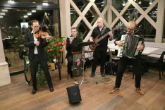 Tokrat je večerjo ob odprtju letošnjih Okusov Radol'ce gostila Restavracija Šobec v Lescah. Udeležili so se je tudi gostje iz tujine. Med njimi smo opazili tudi nekaj razpoloženih Američanov, ki so uživali tako v hrani in vinski spremljavi kot tudi glasbi, za katero so tokrat skrbeli člani zasedbe Originalci z Rokom Kranjcem. Za vezno besedilo med večerjo je skrbel Rok Bohinec, ki se je med znano in manj znano zasedbo radovljiških kuharskih mojstrov in njihovih ekip ter strežnega osebja dobro znašel. Mikrofon je med posameznimi krožniki spretno predajal tudi vinarju Matjažu Lamutu, kot tudi Primožu Rojacu, ki je tokrat poskrbel za brezalkoholno spremljavo. In mimogrede smo opazili, da je štirihodni meni iz sledljivih sestavin tokratne večerje to spremljavo imel precej poudarjeno ali izrazito, če se lahko tako izrazimo. Izvedeli smo, da je v zadnjih dveh letih, sicer bolj pri tujcih kot domačih gostih, brezalkoholna spremljava krožnikov postala nekaj običajnega. Gre morda za trend, modno muho, nas je zanimalo, a ena od gostij, ki se na dnevni bazi srečuje s podobnim, ni ne prikimala ne zanikala, le poudarila, da so morda zanjo najbolj zanimiva brezalkoholna peneča vina. So se pa za isto mizo gostje pogovarjali tudi o brezalkoholnem džinu …