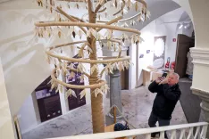 Visokemu jubileju so se poklonili tudi z inštalacijo v obliki drevesa, ki jo krasi več kot dvesto klekljanih žirov. / Foto: Tina Dokl