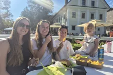 Turistično društvo Gorenja vas še ni dobro posušila kuhalnic po 25. svetovnem festivalu praženega krompirja v Šenčurju, ko so na Visokem že spet pripravljali njihov znani pražen krompir z lisičkami. Glede na to, da smo na vrhuncu gobarske sezone, so imeli cel škaf svežih. Pekli pa so tudi palačinke z različnimi nadevi.