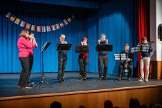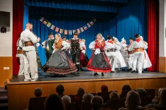 Folklorna skupina Juliana Kulturno-športnega društva Hrušica je gledalce posedla v navidezni avtobus in jih odpeljala na lepše.