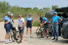 Start druge etape je bil v slikoviti in kar malo skrivnostni okolici Donjega Štoja na eni od plaž ali pa vhoda na več plaž, kjer smo lahko v miru parkirali kombije in so se kolesarji odpravili na novo dnevno dogodivščino. Za nekaj minut sem imela občutek, da smo na prizorišču, kjer snema Emir Kusturica, ali pa se bo od nekod pojavil Guy Ritchie s svojimi režiserskimi zamislimi, lahko pa se bodo zdaj zdaj izza vogala pripeljali kakšni hipijevski ljubitelji kajtanja.
