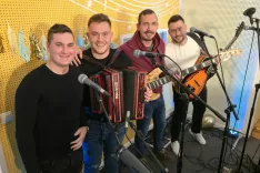 Smo pa tokrat med drugim izvedeli tudi, od kod ime ansambla. Ime jim je nadel eden od sosedov treh članov skupine, saj so na vaje večkrat prihajali v prepoznavnih slovenskih obuvalih. Slovenci legendarne natikače poznamo pod imenom jazbečarke … Ansambel Jazbeci sestavljajo: vokalist Nejc Peternelj, harmonikar Tadej Dolenec, kitarist Aleš Demšar in basist Blaž Križnar.