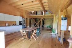 Družinsko zasnovan prostor združuje bivalni prostor s kuhinjo, kopalnico, spalnico in gospodinjsko sobo (utilitijem) v pritličju, ter otroške sobe in igralnico v galeriji. Spodnji del objekta, kjer je bil nekoč hlev, je ostal nedotaknjen. »Uspešno smo ohranili stavbno dediščino, na katero smo upravičeno ponosni, hkrati pa smo prostoru vdihnili novo življenje, ki bo služilo prihodnjim generacijam še mnogo let. Objekt ne zahteva prilagojenega bivanja, ampak izpolnjuje vse sodobne standarde udobja in funkcionalnosti,« je pojasnil arhitekt Matej Gašperič.