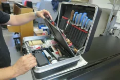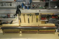 »Medtem ko se Benton ukvarja z visokocenovnimi klavirji, jaz pokrivam predvsem segment pianinov, ki so tudi cenovno dostopni širšemu krogu ljudi. Seveda še vedno sodelujemo in si znamo priskočiti na pomoč,« pojasnjuje Tomaž, ko mi razkazuje bogato zbirko orodja v delavnici in prenosnem kovčku. »Več mi pomeni ta kovček s prirejenim specializiranim orodjem kot pa kombi, s katerim pianine in klavirje razvažam naokrog,« pove mojster, potem ko se mi zdi, da je precej orodja podobnega tistemu, ki ga uporabljajo zobozdravniki.