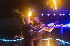 Preddvor – Na božični dan se je v Preddvoru zbralo rekordno število ljudi. Ne zaradi spektakla v klasičnem pomenu besede, temveč zaradi nečesa preprostejšega in trdnejšega: skupne zgodbe. Dogodek, ki že več kot četrt stoletja zaznamuje preddvorski veselodecembrski utrip, se je začel s praznično sproščenostjo. Preprosti muzikanti so s svojimi vižami in povabilom na ples hitro zabrisali mejo med nastopajočimi in obiskovalci. Ko pa se je dan prevesil v večer, je jezero prevzelo glavno vlogo. Ognjena predstava kolektiva Kreaktiv je ob plamenih in sencah uprizorila legendo o Hudičevem borštu – tisto staro zgodbo o prepiru, izrečenih besedah in zvonjenju, ki še danes drži svet skupaj. V vlogi hudička je tudi letos nastopila najmlajša članica zasedbe, dvanajstletna Tana, ki je s svojo prisotnostjo legendi dala nežnost in mehkobo.