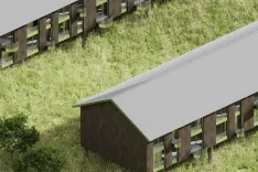 Ela Grasselli je v projektu Dve dolgi hiši na novo zasnovala tri hektarje veliko nekdanje odlagališče jeklarske žlindre na Slovenskem Javorniku. Projekt ima tri faze. V prvi fazi predvideva vzpostavitev infrastrukture in neposredno pilotiranje z materiali iz lokacije. Druga faza vključuje izkopavanje ter vzpostavitev obrata za predelavo izkopanega materiala in jeklarske žlindre družbe SIJ Acroni, pri čemer uporablja nizkoogljično tehnologijo geopolimerizacije, s katero nastajajo gradbeni izdelki brez cementa. Zadnja faza predvideva uporabo izdelanega materiala pri preoblikovanju objekta, ki postane dvojna podolgovata stanovanjska stavba z ocenjenim 40 odstotkov nižjim ogljičnim odtisom v primerjavi s klasično gradnjo. Zasnovana je kot »vas v eni hiši«, kjer so skupni prostori svetli in povezovalni, hkrati pa je omogočen umik v zasebnost.
