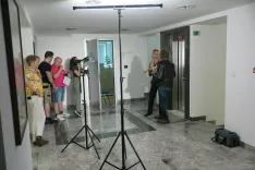 V prostore Gorenjskega glasa smo prejšnjo soboto sprejeli prav posebne goste. Pred stavbo, na hodniku ob dvigalu in za delovnimi mizami v redakciji je filmska ekipa posnela nekaj kadrov za film z naslovom Pure Vortex. Scenarij zanj sta napisala Iza Kokoravec Povh in Vital Butinar, ki se podpisuje tudi pod režijo.