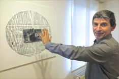 Slikar in grafik Miha Perčič ob svojih likovnih planetih / Foto: Igor Kavčič