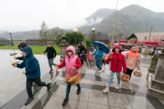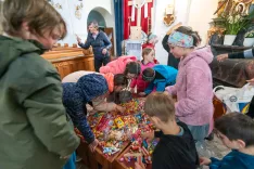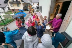Takole so kot v starih časih iz peharja poletele sladke dobrote, ki so jih otroci z veseljem pobirali po tleh. / Foto: Simon Benedičič