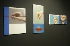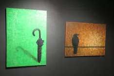 Tu so še dela iz različnih obdobij, recimo slika Tišina z motivom prsta, ki prekriva usta, ponovljena po enem od balvanov v gozdu, pripoved o slikarjevem vsakdanjiku v ateljeju v rodni Sorici lahko prepoznamo v triptihu malega formata z naslovom Delo v ateljeju, ki je nastal v času epidemije, iskrivo duhovit pa je tudi v nekaj platnih, ki jih imenuje za kolateralne – ker gre običajno za tisto, kar nastane po čiščenju čopičev, morda tudi za nedokončane ali odstavljene slike.
