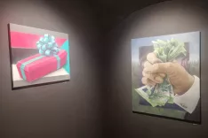 Družbenokritični podton zaznamo v obeh oljih na platnu, ki jih je Kejžar ustvaril na temi lanske in letošnje Kolonije Iveta Šubica, ki jo prireja Združenje umetnikov Škofja Loka, katerega član je tudi sam. Slika Dvo-lično opozarja na zaton človečnosti ob vojnih konfliktih v svetu, še posebno na Bližnjem vzhodu, druga Zeleno pa o prevladi kapitala nad človekom in naravo. »Po naključju so zeleni stoevrski bankovci, ki stopajo v ospredje. Rob je gozd, notranji okvir je del stare slike, ki predstavlja gospodarsko rast, izstopa pa, kot rečeno, denar,« sliko pojasnjuje Kejžar in se obrne na nasprotni del prostora k slikama iz zgodnjega ustvarjalnega obdobja. Olji na platnu iz leta 2011 imata naslova Navadna travniška marela in Krokar. »Sliki sta še iz časa študija in obe že preslikani, saj sta bila spodaj druga motiva. To počnem pogosto. Če mi slika ni všeč, mi je ni škoda preslikati.«