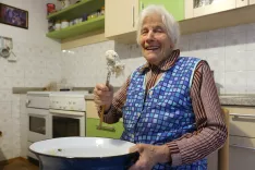 Prečudovite kape, trakove, rokavice in nogavice izdeluje Anica Kržišnik, in to pri skoraj 97 letih. »Narejenih imam več kot sto izdelkov, že več kot pol leta, s Karitas mi prinesejo material, jaz pa potem spletem reči za njihov dobrodelni dogodek, ki ga imajo v decembru. Zastonj pletem, kolikor časa bom še lahko, bom to delala. Eno nogavico, recimo, spletem v enem dnevu. Ob slovesu si obljubimo, da se čez dobra tri leta spet srečamo. Anica Kržišnik in njen vnuk Niko Kržišnik bosta takrat skupaj praznovala 150 let.