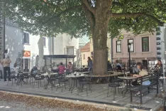 V filmu Manifesto so vrt kavarne Homan spremenili v pokopališče. / Foto: Klara Mrak