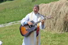 Tako kot vselej je sledilo prijateljsko srečanje z okrepčili, ki so jih s seboj pripeljali ali na planini skuhali organizatorji. Brez pesmi in harmonike ni šlo. Za to je poskrbel Jaka Kern iz Podkorena.