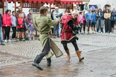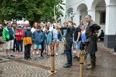 Radovljica – Semenj je dopoldne v izvedbi igralske skupine, ki nosi njegovo ime, slavnostno odprl vitez Gašper Lambergar z bližjega gradu Kamen z dvorom. Ta je na trgu tudi zaplesal, pred cerkvijo pa so se stari in mladi pod budnim nadzorom Gašperjevih vitezov pomerili na lokostrelskem turnirju.