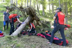 Gorski reševalci so v enem od scenarijev iz gozda reševali ponesrečenca s poškodbami glave. / Foto: Peter Košenina