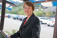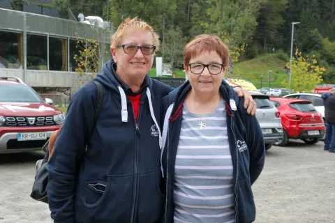 Marinka Perič Arh in Darinka Milošič, Jezersko: »Dobro je, da se družimo. Pri nas, na Jezerskem, gremo upokojenci vsak teden na sprehod, ob četrtkih imamo telovadbo, poleg tega kegljamo. V soboto bomo imeli tekmovanje, na katero bodo prišle tudi ekipe z Bleda, iz Rateč, Avstrije, Nemčije ...« / Foto: Tina Dokl
