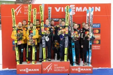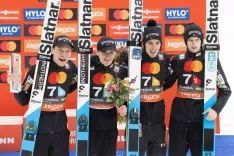 Rateče – Po včerajšnji dvojni zmagi slovenskih skakalcev, ko je Domen Prevc slavil pred Anžetom Laniškom, je bila danes na sporedu ekipna tekma. Slovenija je nastopila v postavi Lovro Kos, Domen Prevc, Timi Zajc in Anže Lanišek.