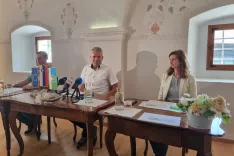 Ob drugi obletnici poplav so Milan Čadež (v sredini), Elizabeta Rakovec in Žan Mahnič predstavili potek in podrobnosti doslej opravljenih sanacij. / Foto: Mateja Rant