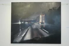 Ob barvnih abstrakcijah Lučke Mak Šparovec, ki na pogled delujejo kot krhke sanjske pokrajine in so rezultat njene dolgoletne likovne govorice, nas navdušijo platna velikega formata, na katerih Luka Širok predstavlja na primer nočno avtocestno krajino, medtem pa Vanja Mervič preseneti s serijo del, na katerih se z akrilnimi barvami kot črtne kode vrstijo barvne paralele. Njegova je tudi prostorska postavitev z minimalistično, prav posebno namiznoteniško mizo.