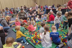 Najmlajši obiskovalci so uživali v sestavljanju duplo kock. / Foto: Suzana P. Kovačič