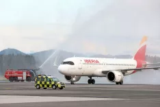Zgornji Brnik – Nekaj več kot 140 potnikov je bilo na krovu Airbusa A320 španskega prevoznika Iberia, ki so ga na Brniku pričakali s tradicionalnim vodnim pozdravom letaliških gasilcev. Ob ponedeljkih in petkih se bo v avgustu zvrstilo še osem povratnih letov, prvi že danes zgodaj popoldne.