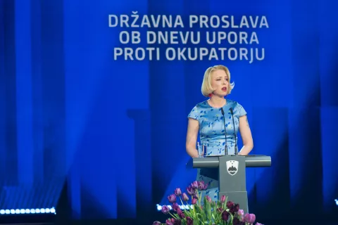 Tržič – Državna proslava ob dnevu upora proti okupatorju, ki ga zaznamujemo 27. aprila, je bila v petek v Tržiču. Predsednica državnega zbora Urška Klakočar Zupančič je v slavnostnem govoru dejala, da je v obdobju, ko je svet zajela brutalna druga svetovna vojna, slovenski narod živel v prepričanju o svoji majhnosti, s predstavo o lastni nepomembnosti. Vsi štirje okupatorji so na zasedenem ozemlju izvajali hude raznarodovalne ukrepe, da bi čim prej potujčili slovensko prebivalstvo.