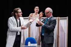 Komedija, v kateri nastopajo Philip Sodja, Vinko Bric, Katja Smolej, Tomaž Bregant, Janja Geltar in Matjaž Korošec, raziskuje kaos in red pa tudi spolnost, duševno zdravje in družbene norme. Predstavo je režirala Bernarda Gašperčič, ki je osnovno besedilo Joea Ortona Nor ... nor ... norišnica tudi priredila za domači oder.