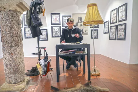Kadar ni na misijah, Jazbec doma skicira, pije kavo in bere Kociprove stripe. / Foto: Tina Dokl