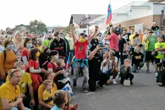 V nedeljo popoldne je Pogačarjev prihod v Pariz na parkirišču za športno dvorano v Komendi glasno proslavilo več kot sto navijačev. S pohvalami na Pogačarjev račun sokrajani niso skoparili. Marjan Pogačar, sicer bratranec Tadejevega očeta Mirka, si je zadnje dejanje letošnje Dirke po Franciji ogledal z ženo Heleno in prijatelji. »Tadej je ves čas govoril, da gre na rumeno,« je povedal Marjan, žena Helena pa je pristavila, da spremljamo pravljico s srečnim koncem. Čeprav so vsi zbrani seveda vse proste popoldneve pred televizijskimi sprejemniki stiskali pesti za Tadeja in verjeli v njegov uspeh, pa so priznali, da je bila sobotna zmaga na kronometru vendarle tudi zanje šok in jim je bilo žal Primoža Rogliča, ki se je prav tako junaško boril. A tudi na uri resnice, kot pravijo kronometru, je v ospredje prišla Tadejeva nepopustljivost. Ali kot se je z rekom izrazil eden od navijačev: »Na koncu gajžla poči.«