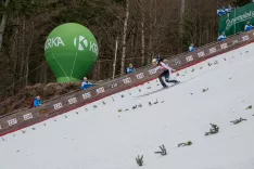 Domen Prevc je v kvalifikacijah pristal pri 224,5 metra in osvojil 4. mesto. / Foto: Primož Pičulin