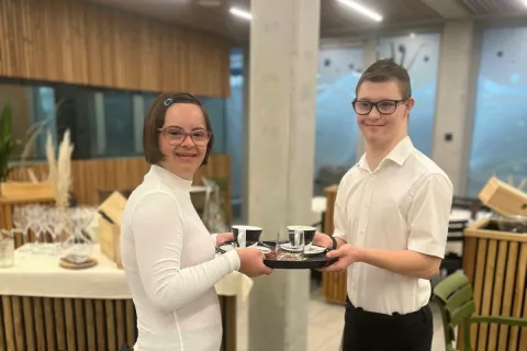 Paraplavalci z Downovim sindromom bodo danes v vlogi natakarjev. / Foto: arhiv PK Radovljica