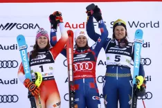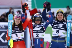 Najboljše tri: Wendy Holdener, Zrinka Ljutić in Anna Swenn Larsson / Foto: Borut Živulović/Bobo