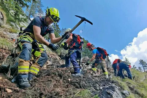 »Na srečo se je izkazalo, da vse skupaj ni tako grozno kot zadnjič. 'Zalaufali' smo krampe, teren prekopali, Cougar je z bambijem še enkrat več opravil super delo, mi pa smo ga končali s presekom in robove z brentači dodatno namočili,« pa so nedeljsko akcijo opisali v Gorski reševalni službi Bohinj.