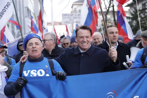 Pavlu Ruparju (Glas upokojencev) se je na zadnjem protestnem shodu upokojencev v Ljubljani med drugim pridružil tudi prvak SDS Janez Janša. / Foto: Borut Živulović/Bobo