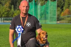 Matjaž Bolka in psička Ora sta zasedla tretje mesto v disciplini iskanja pogrešanih v ruševinah. / Foto: arhiv kluba