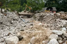 Kokra – Sinočnje neurje je v delu vasi Kokra v občini Preddvor, med domačini znanem kot Kurja vas, pustilo pravo opustošenje. Intenzivne padavine so ponoči nad vasjo sprožile ogromno količino materiala, ki je po strugi naraslega potoka Noškarjev graben prišel do vasi in zasul več hiš. Odneslo je tudi most. Intervencijske ekipe že od sinoči v vasi odstranjujejo naneseni material, čistijo tudi strugo reke Kokre, da pretok vode ni oviran.