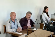 Zastopnik podjetja Alpetour Bandag Aleš Langerholc (levo) je priznal krivdo za povzročitev splošne nevarnosti. Desno njegov zagovornik Miran Hude. / Foto: Maša Likosar