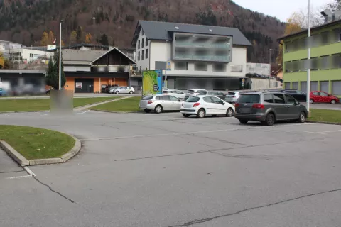 Kraj prometne nesreče na enem izmed parkirnih prostorov nakupovalnega centra na Spodnjem Plavžu na Jesenicah / Foto: arhiv PU Kranj