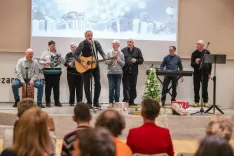 Za dodatno zabavo je v večernih urah na jeseniškem predprazničnem dogodku poskrbela glasbena skupina Joške v'n. / Foto: Nik Bertoncelj