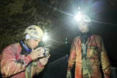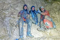 Ekipa jamarjev, ki je odkrila magično mejo tisoč metrov globine: z leve Peter Mašič, Jure Bevc in Matevž Marinko. / Foto: arhiv DZRJL