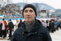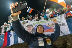 Slednji si je nekaj trenutkov vzel tudi za navijače iz Dolenje vasi in jih prišel pozdravit. Oblečeni so bili v majice z zlatim orlom. »Danes nas je prišlo dvajset. Tudi če se Domen ne bi boril za zlatega orla, bi bili tukaj. To je eno izmed prizorišč, na katerem kar redno podpiramo naše sovaščane iz skakalne družine Prevc. Bili smo že ob slavju Petra. Biti zraven ob takšnih uspehih je prestiž, prav neverjetno je in zelo smo veseli. Vzdušje je odlično. Navijamo z navijači Roka Oblaka, torej smo se združili navijači iz Selške in Poljanske doline. V manj številni zasedbi smo bili skupaj že v Oberstdorfu. Večer bo še dolg, a jutri je delovni dan, tako da bo treba kar hitro nazaj proti Sloveniji,« je bil dobre volje Janez Rakovec, vodja navijačev bratov in sestre Prevc iz Dolenje vasi. Med navijači iz obeh dolin smo opazili tudi dva župana: Železnikov Marka Gasserja in Gorenje vasi - Poljan Milana Čadeža, poleg njiju pa še poslanca Žana Mahniča.